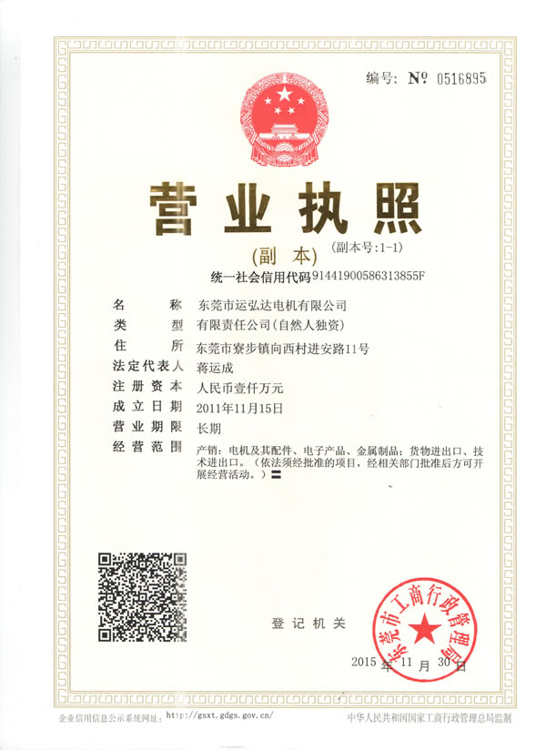 從開公司到現(xiàn)在,一直和運弘達合作,運弘達電機質(zhì)量非常好,都遵守ISO9001:2008質(zhì)量控制體系,我們很放心,并于貴公司建立良好的合作關系!還有優(yōu)質(zhì)的售后服務,遇到問題總能第一時間幫我們解決,非常感